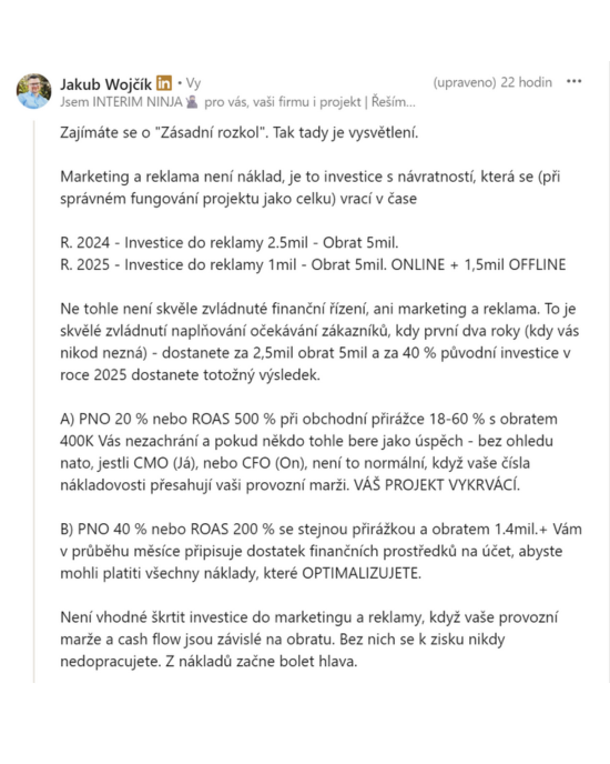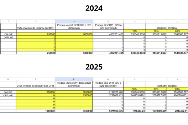 Investice do reklamy R. 2024 - 2,5mil -obrat 5mil