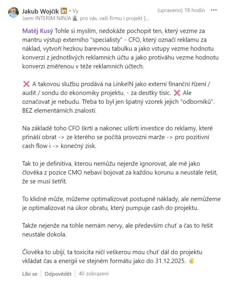 B2B - začátek působení v segmentu 06.2025 - současnost 📈